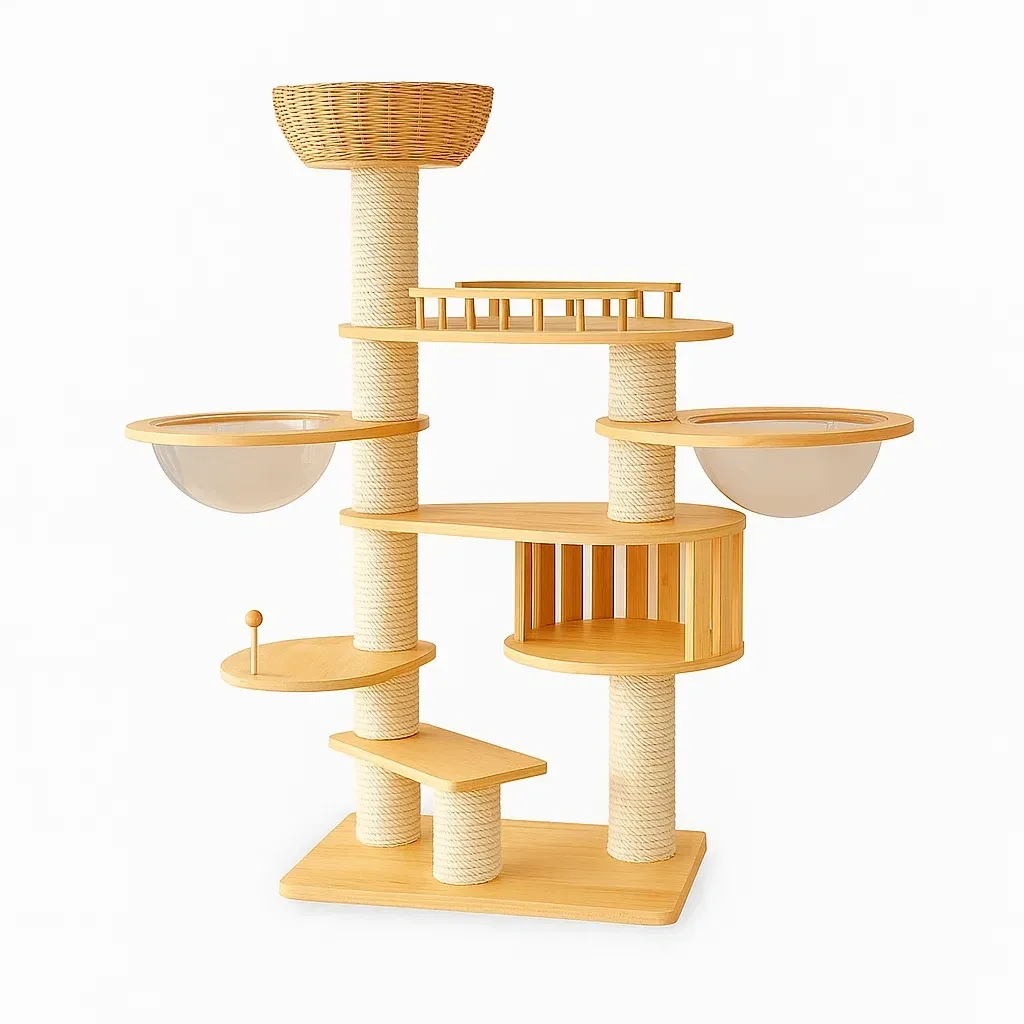 Le strutture per l'arrampicata dei gatti adatte agli ambienti interni includono piattaforme multilivello e strutture a pilastri per soddisfare le esigenze quotidiane di attività e riposo dei gatti.