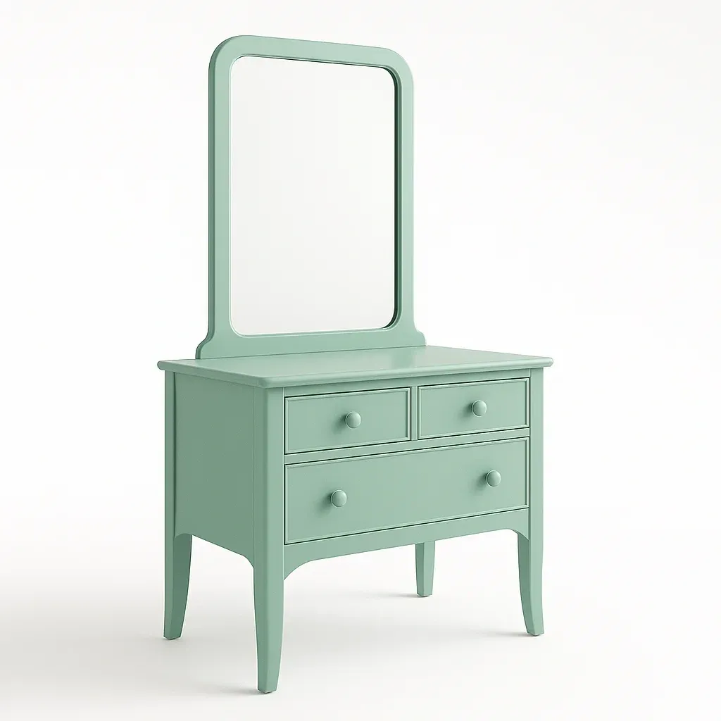 Questa cassettiera con specchio è adatta per l'uso interno. Include cassetti portaoggetti e una struttura a specchio fissa per soddisfare le esigenze quotidiane di contenimento e organizzazione.
